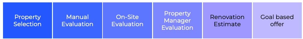 Every property of interest must pass a multi-step validation process. Only properties that pass every step are considered. Below are the process steps before the property is under contract.